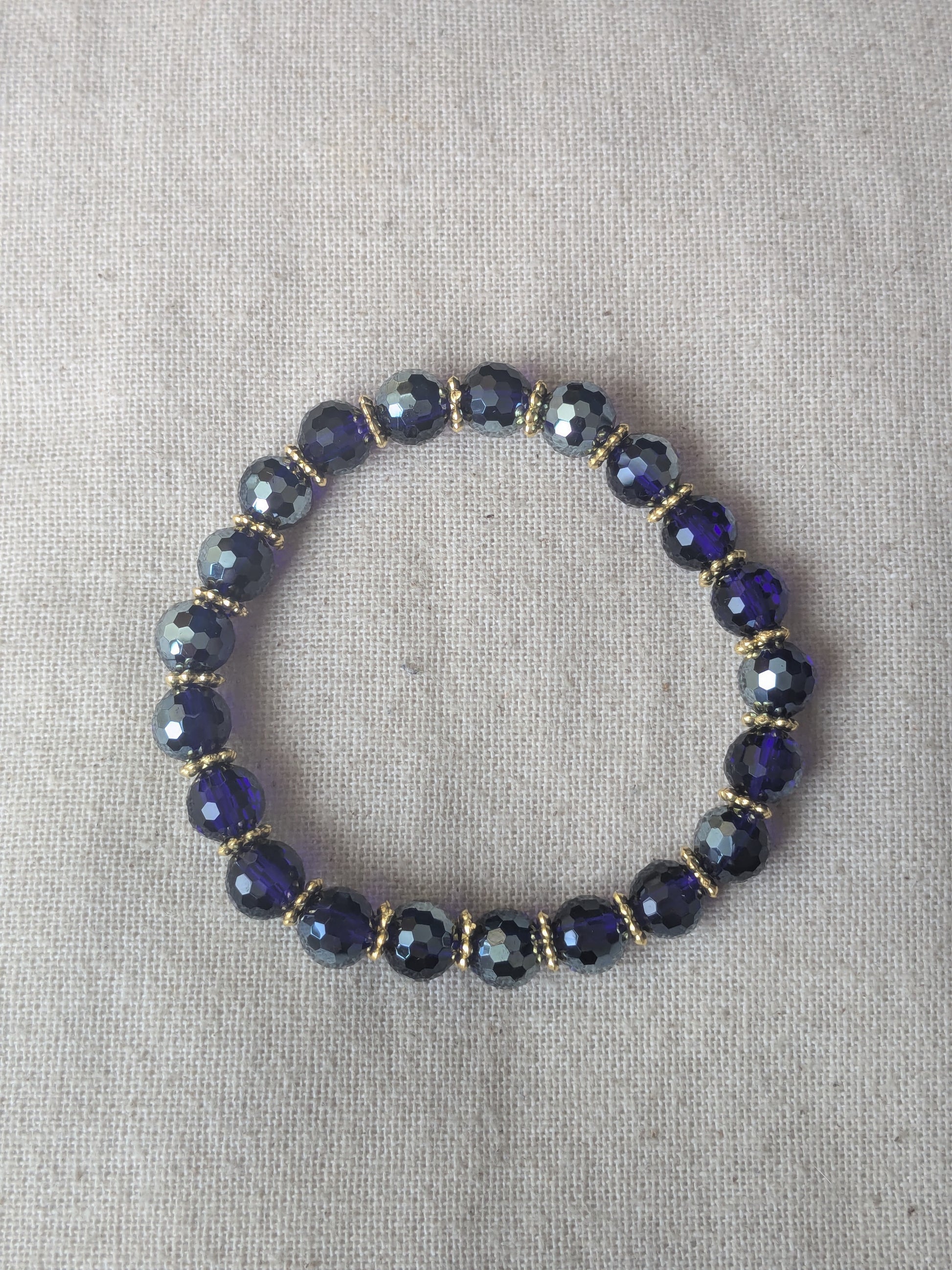 Bracelet perles verre facetté bleu foncé