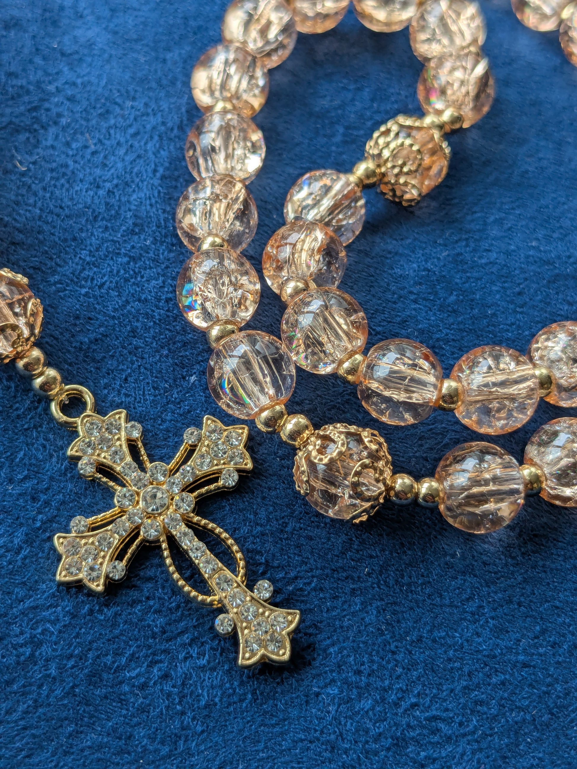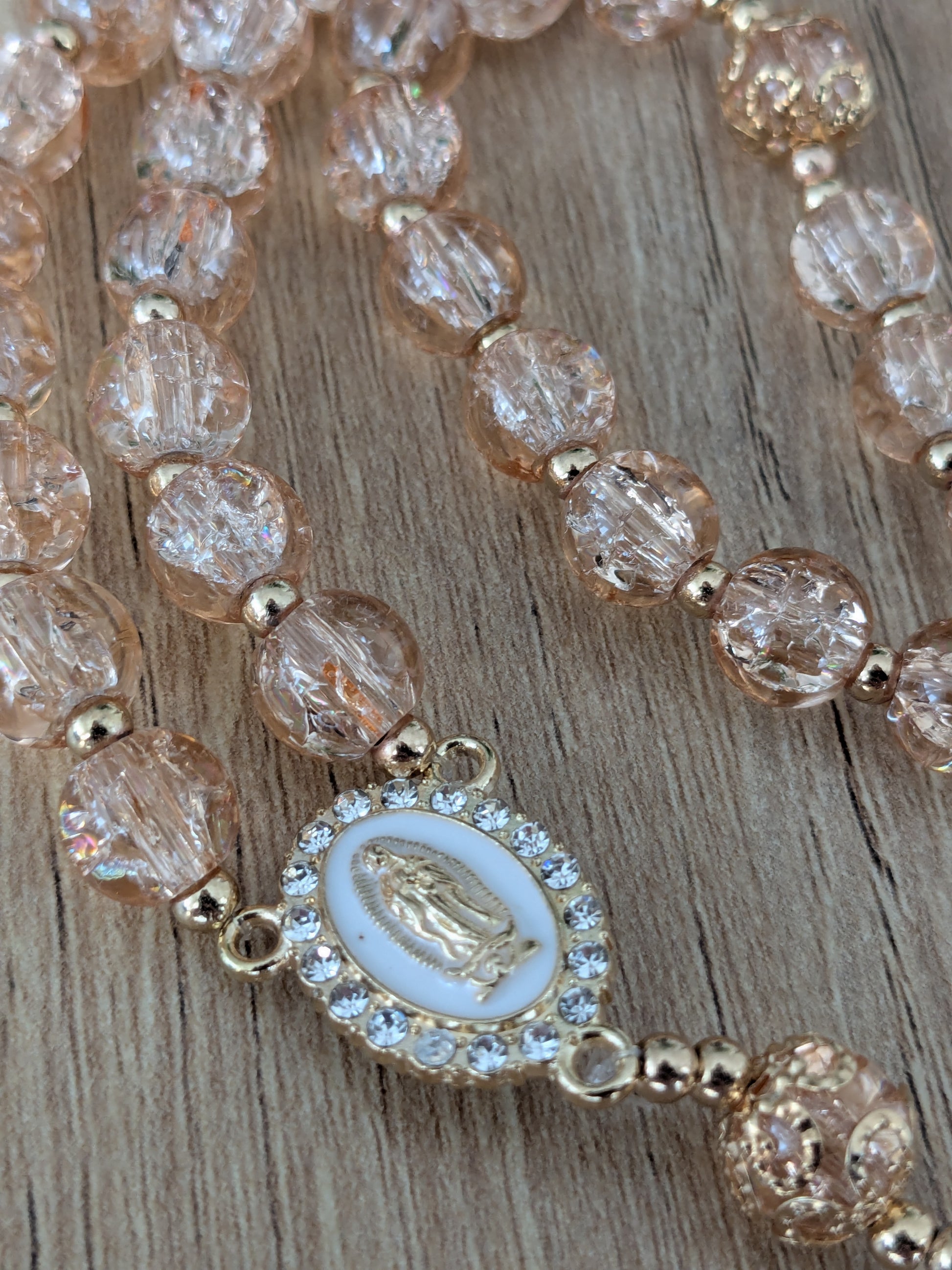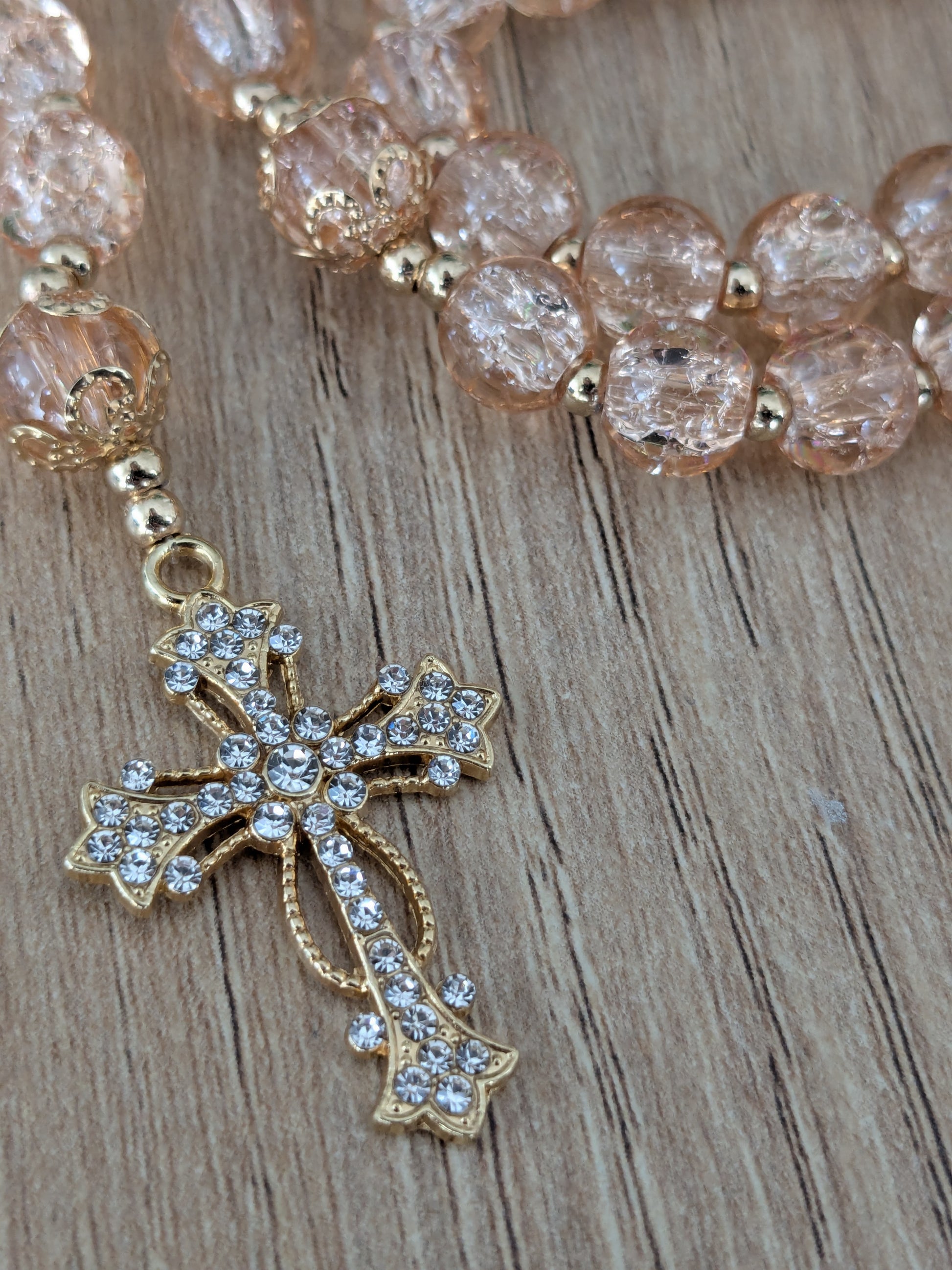 Ce chapelet catholique vous accompagnera dans toutes vos prières. Il est composé de perles en verre craquelé de couleur pêche. D’autres couleurs disponibles.