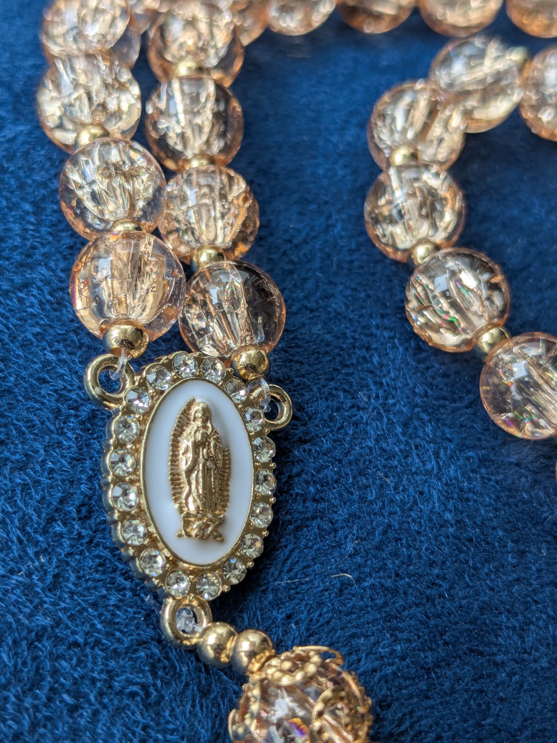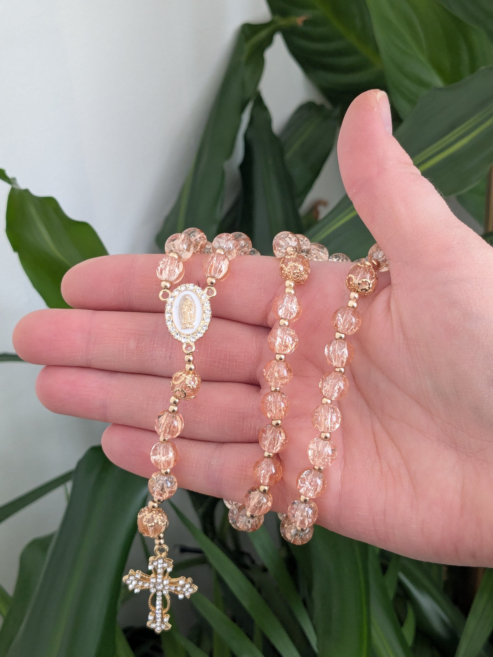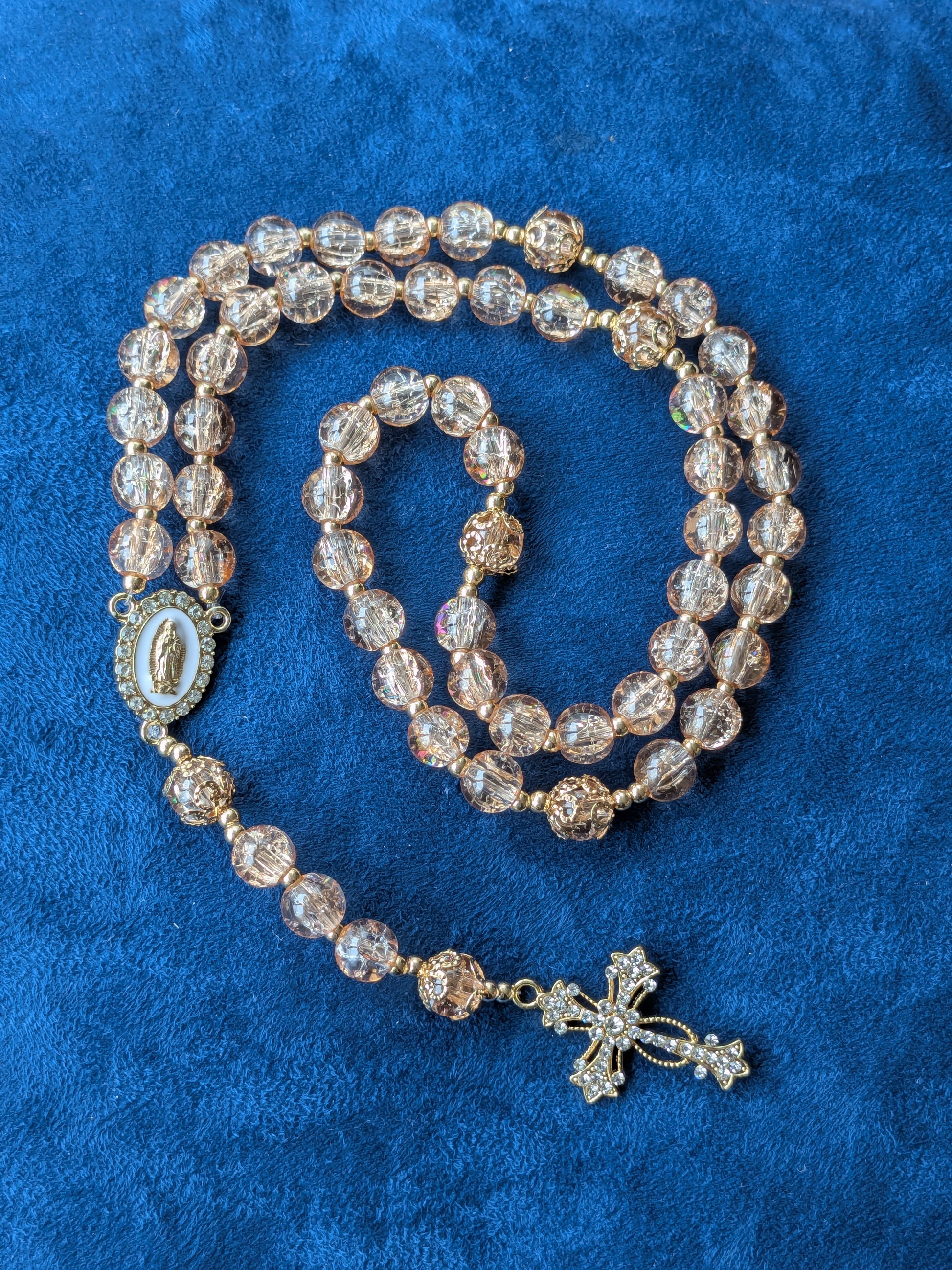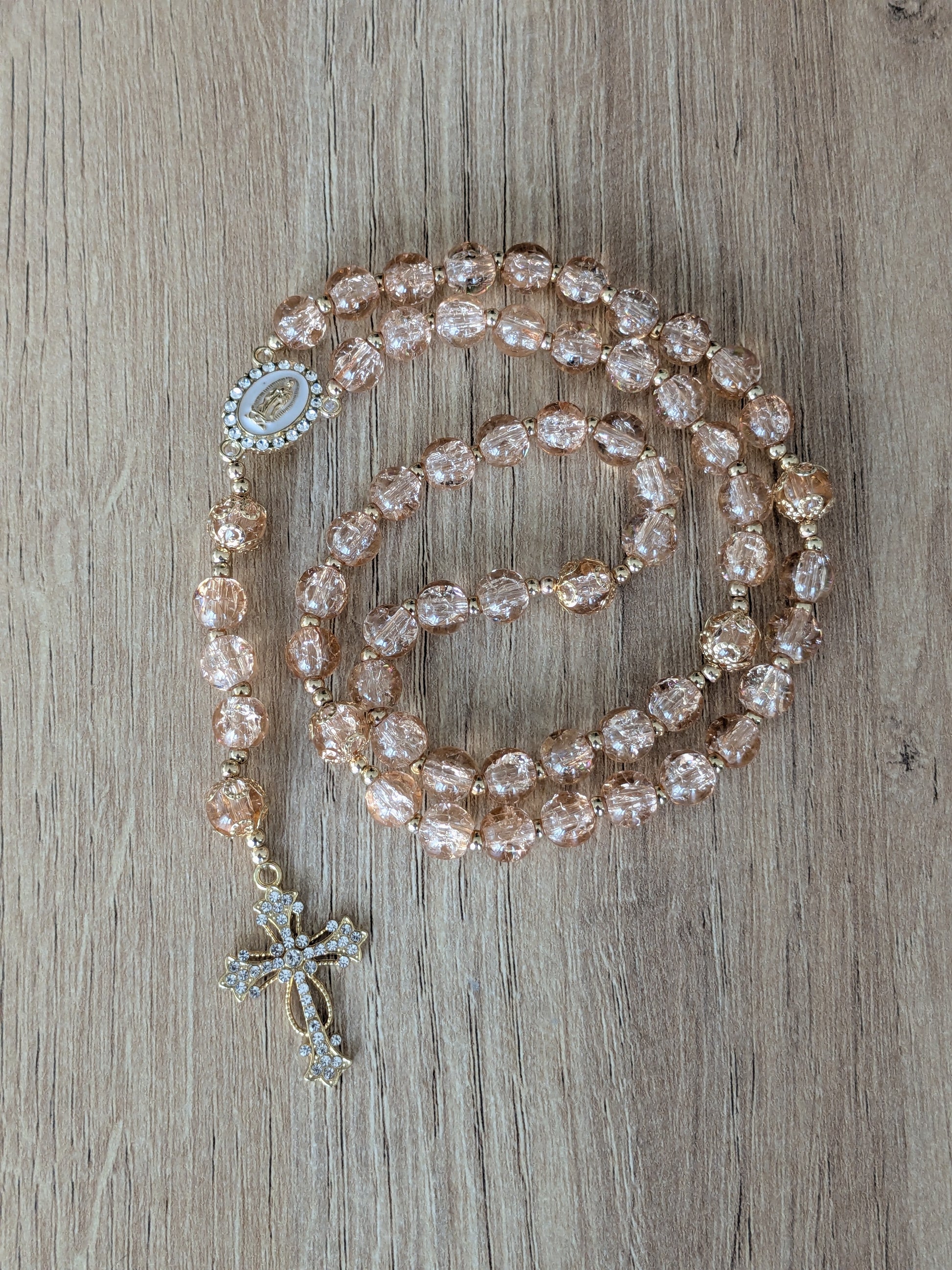 Ce chapelet catholique vous accompagnera dans toutes vos prières. Il est composé de perles en verre craquelé de couleur pêche. D’autres couleurs disponibles.