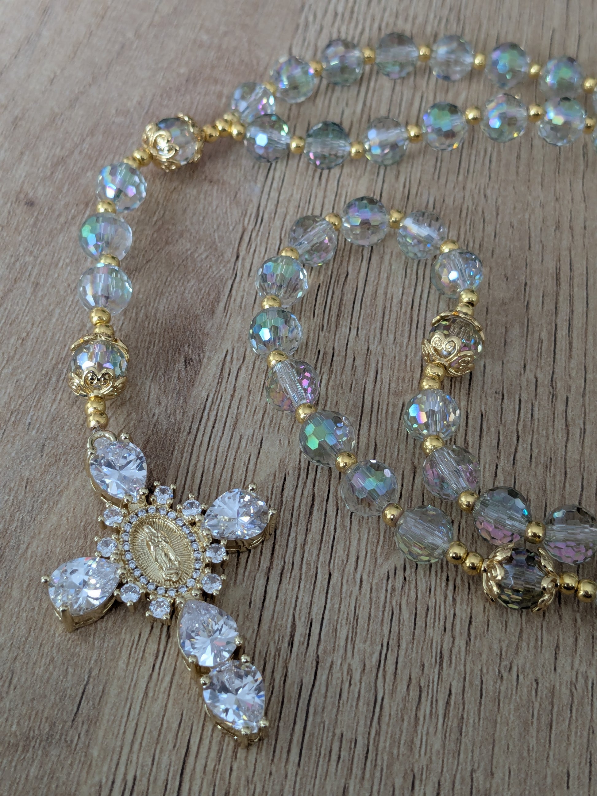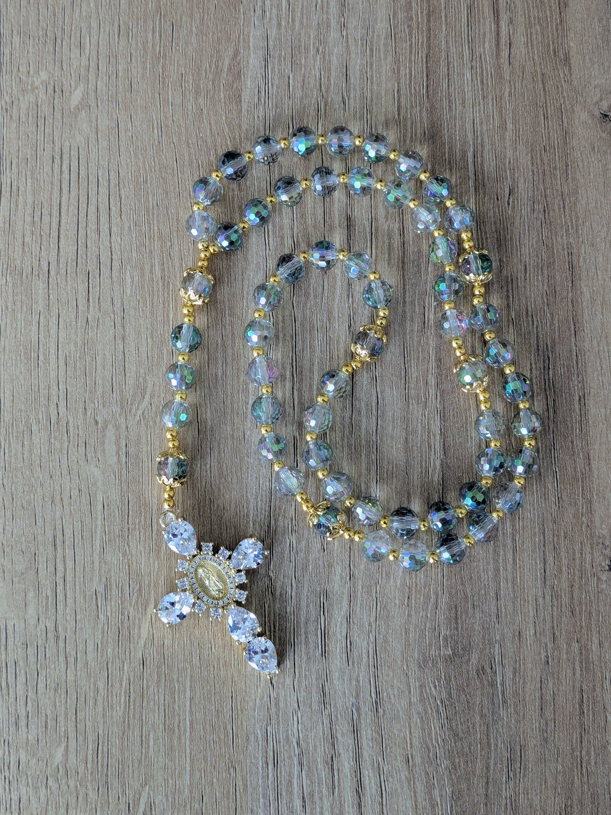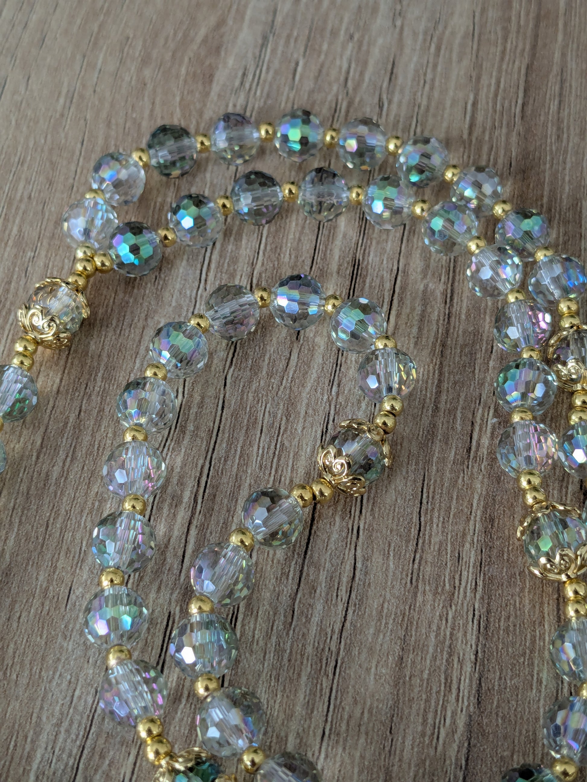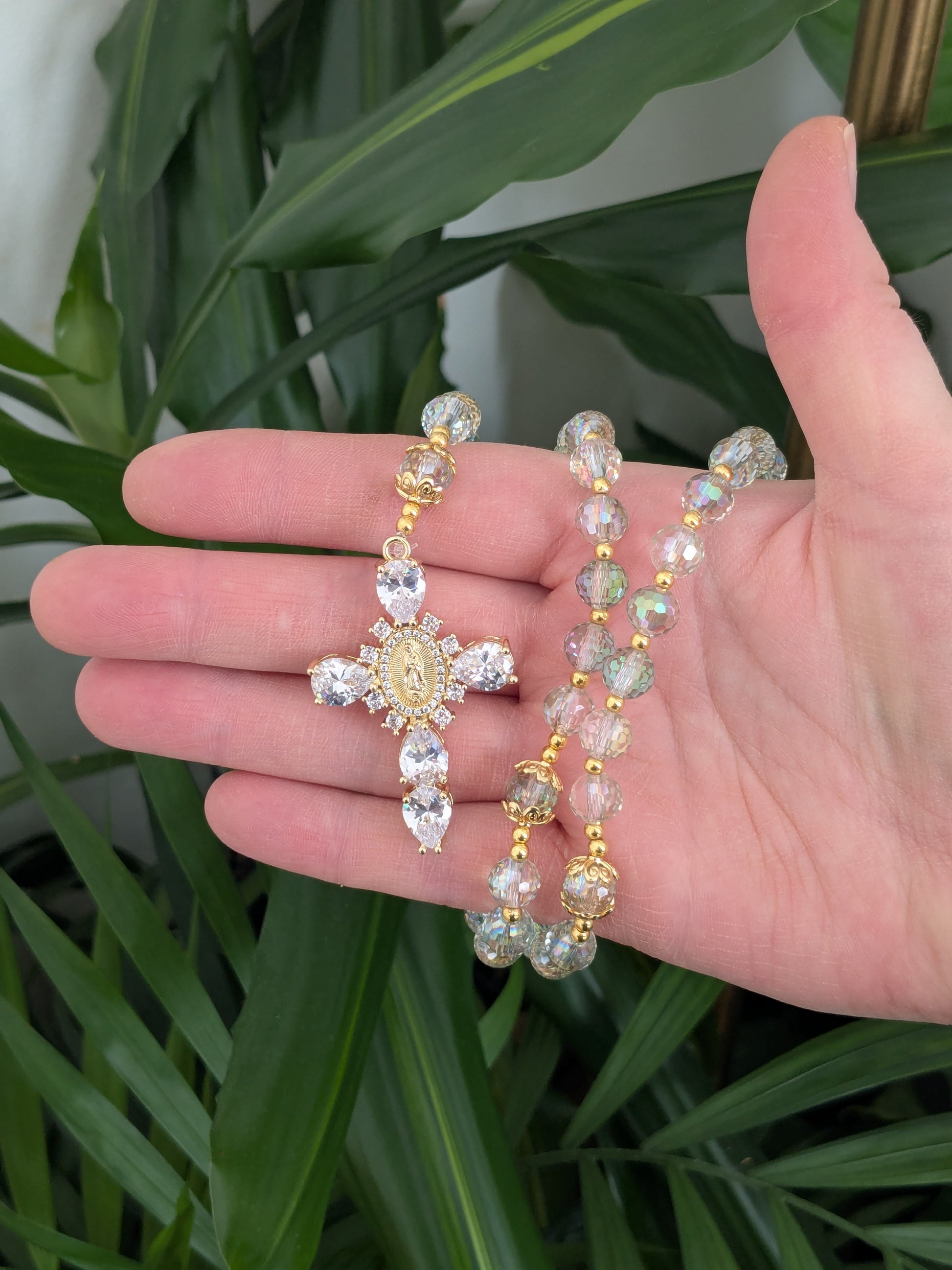 Ce chapelet catholique vous accompagnera dans toutes vos prières. Il est composé de perles facettées en verre de couleur vert clair
