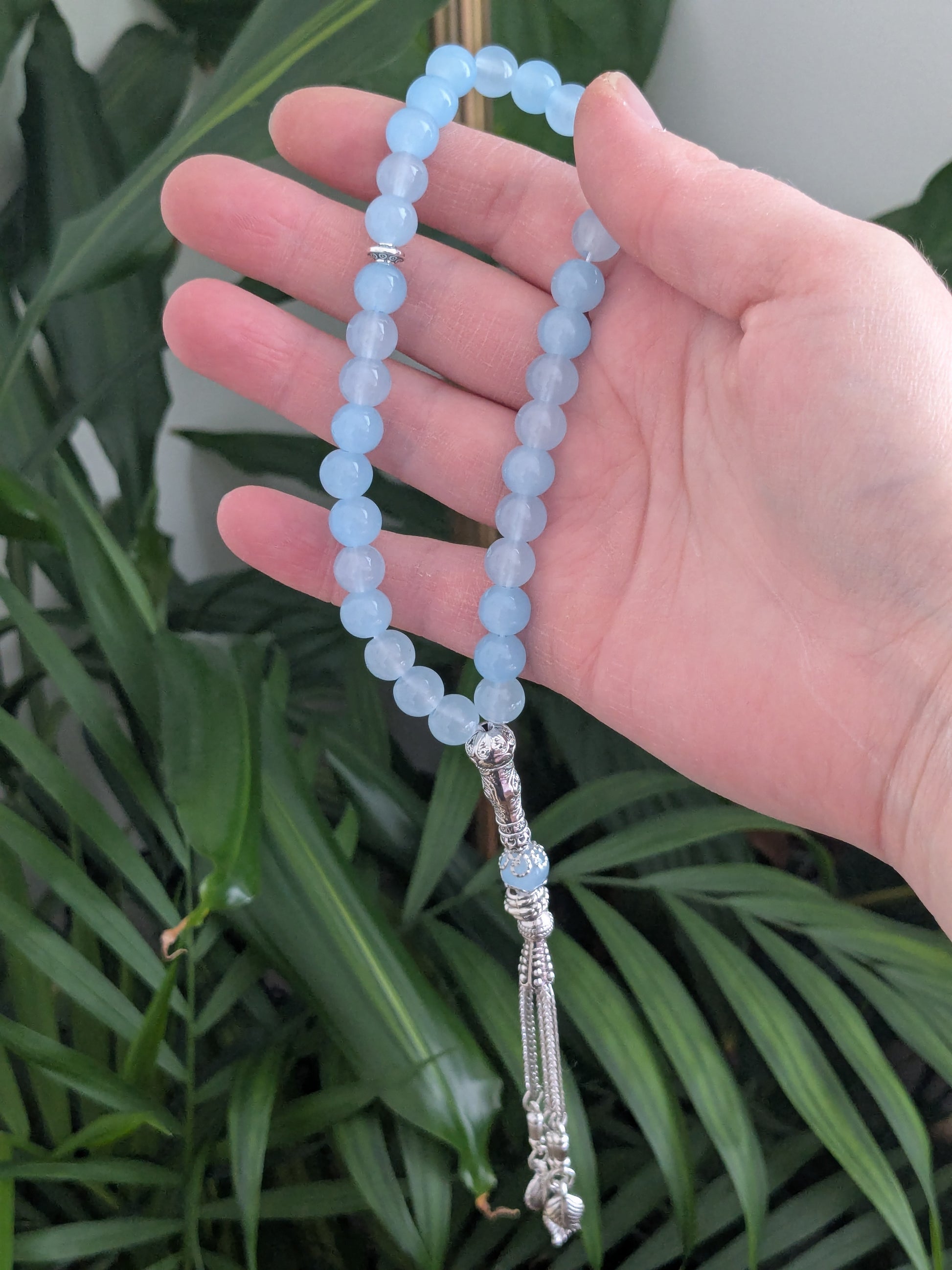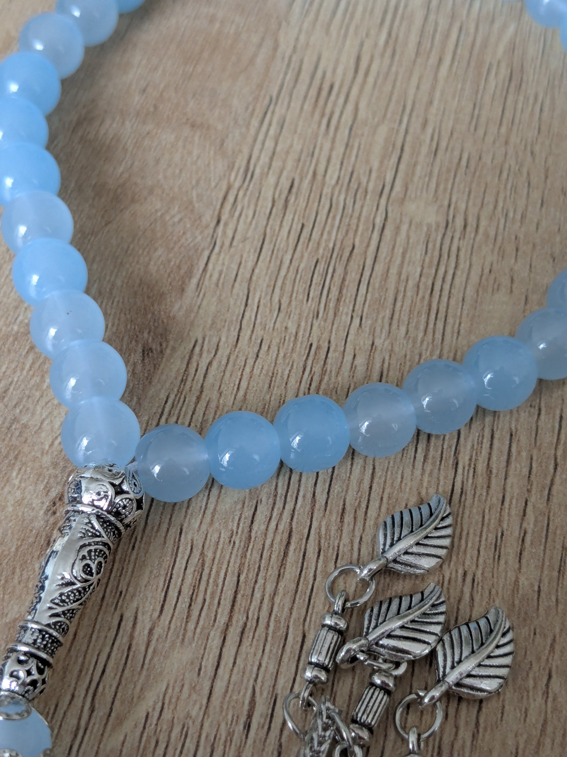 Misbaha de confection artisanale, qui vous accompagnera dans toutes vos prières. Il est composé de 33 perles en verre.