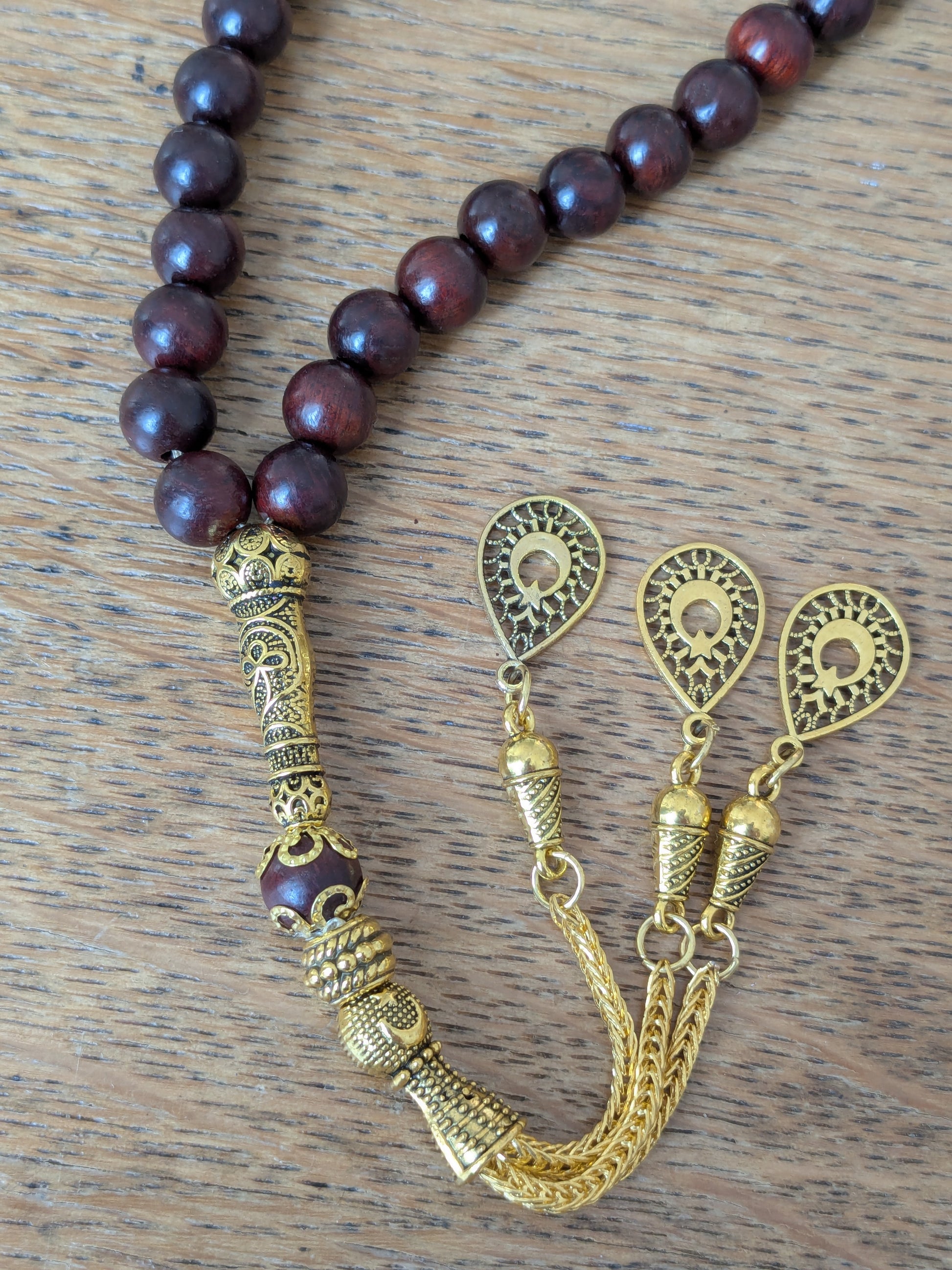 Découvrez ce magnifique chapelet musulman de confection artisanale, qui vous accompagnera dans toutes vos prières. Il est composé de 33 véritables perles de Bois.