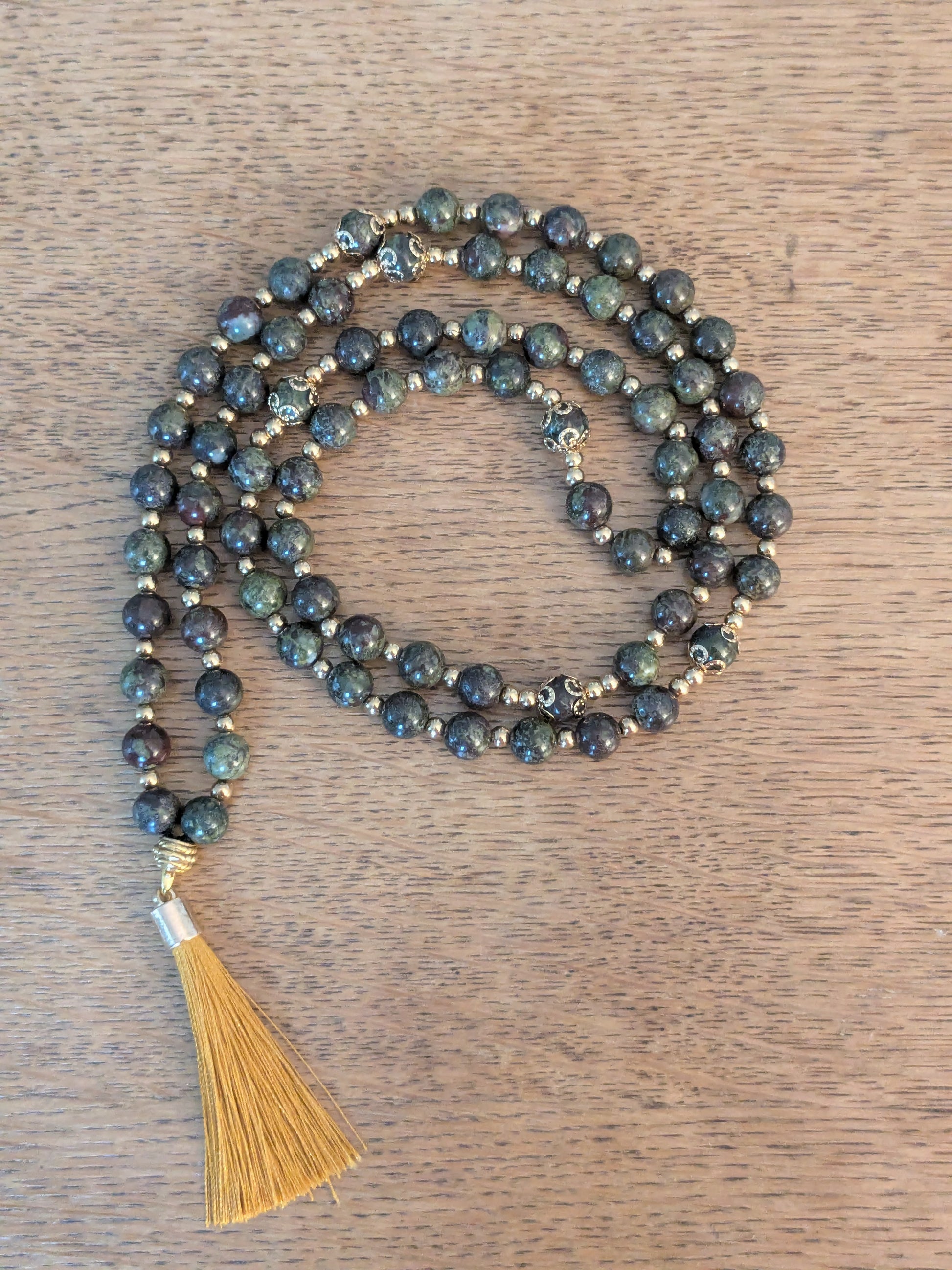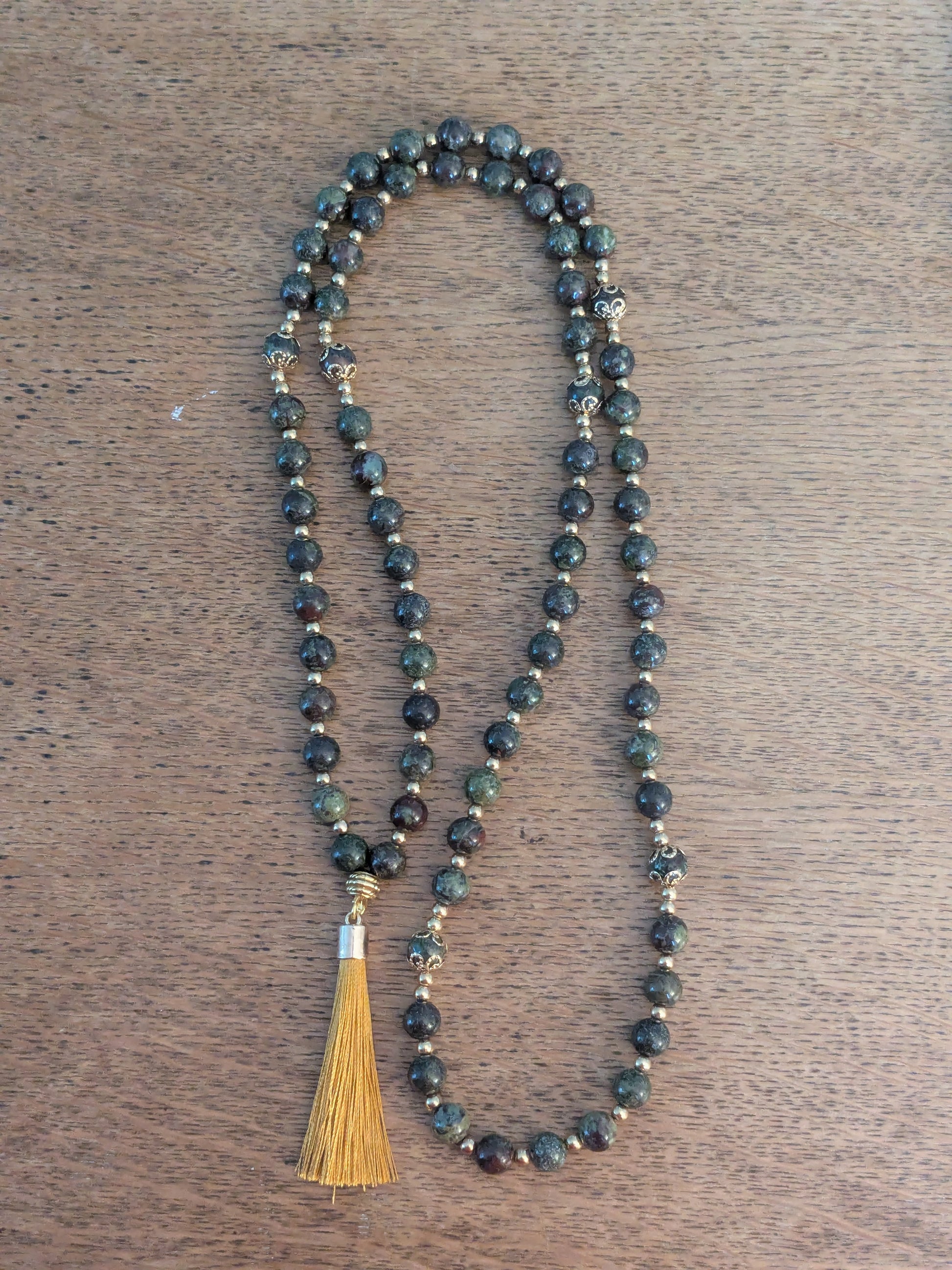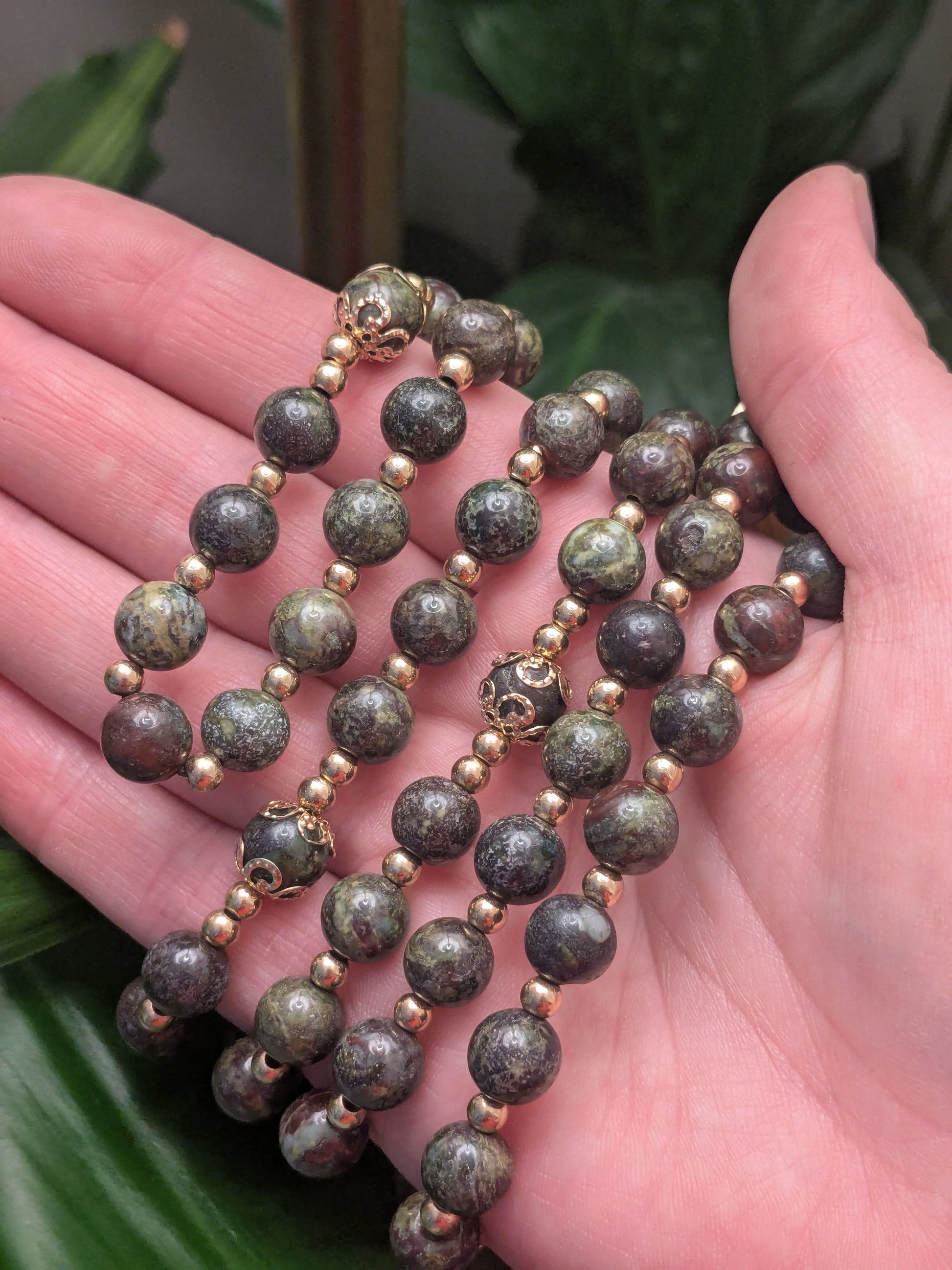 Découvrez ce magnifique collier réalisé de façon artisanale en véritables pierres de Jaspe Sang de Dragon.